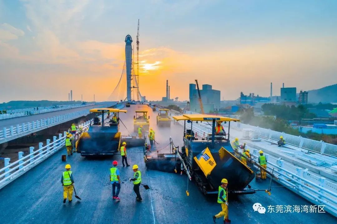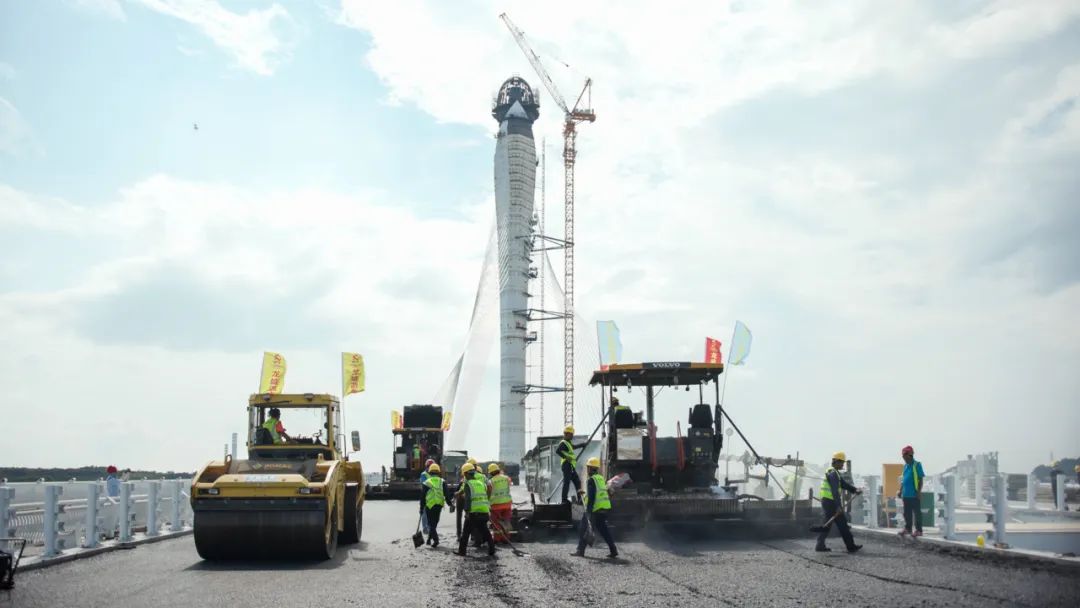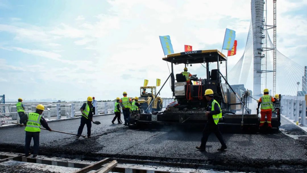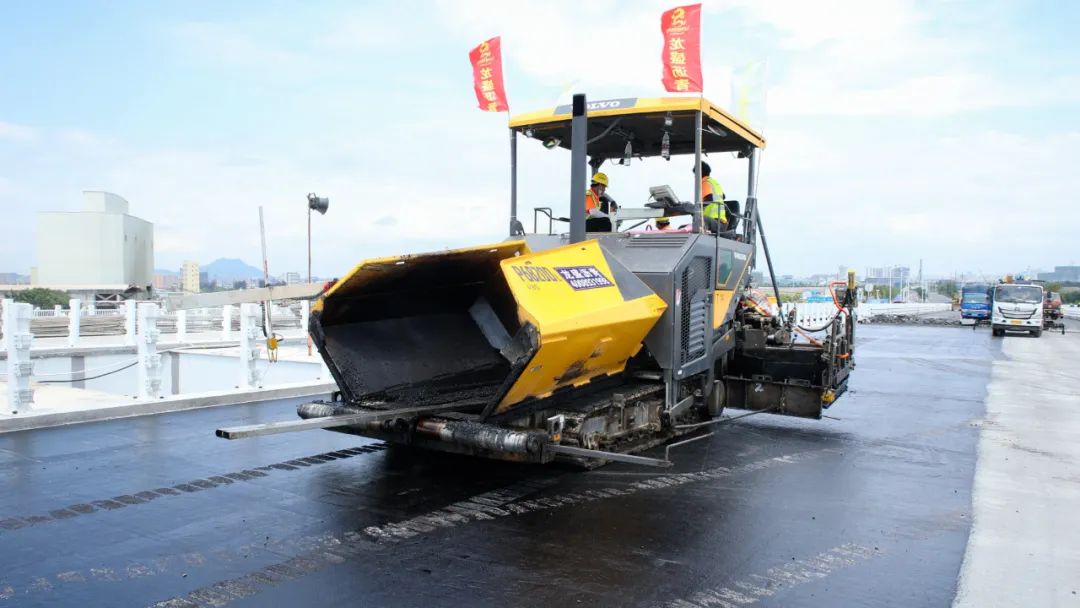 主橋右幅的瀝青已攤鋪完成